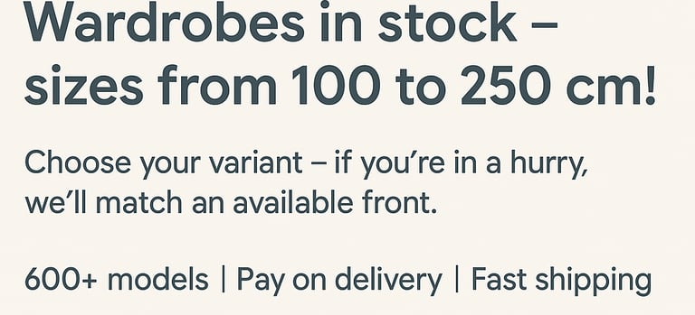 We suggest you browse our website www.lukafurniture.ie to check what furniture one we have in stock, pick size, colour and enjoy orderly interior! Add to shopping cart our bedroom wardrobes. Check our type wardrobes collection and our filters to choose one of our furniture. Add to basket and check our stock.